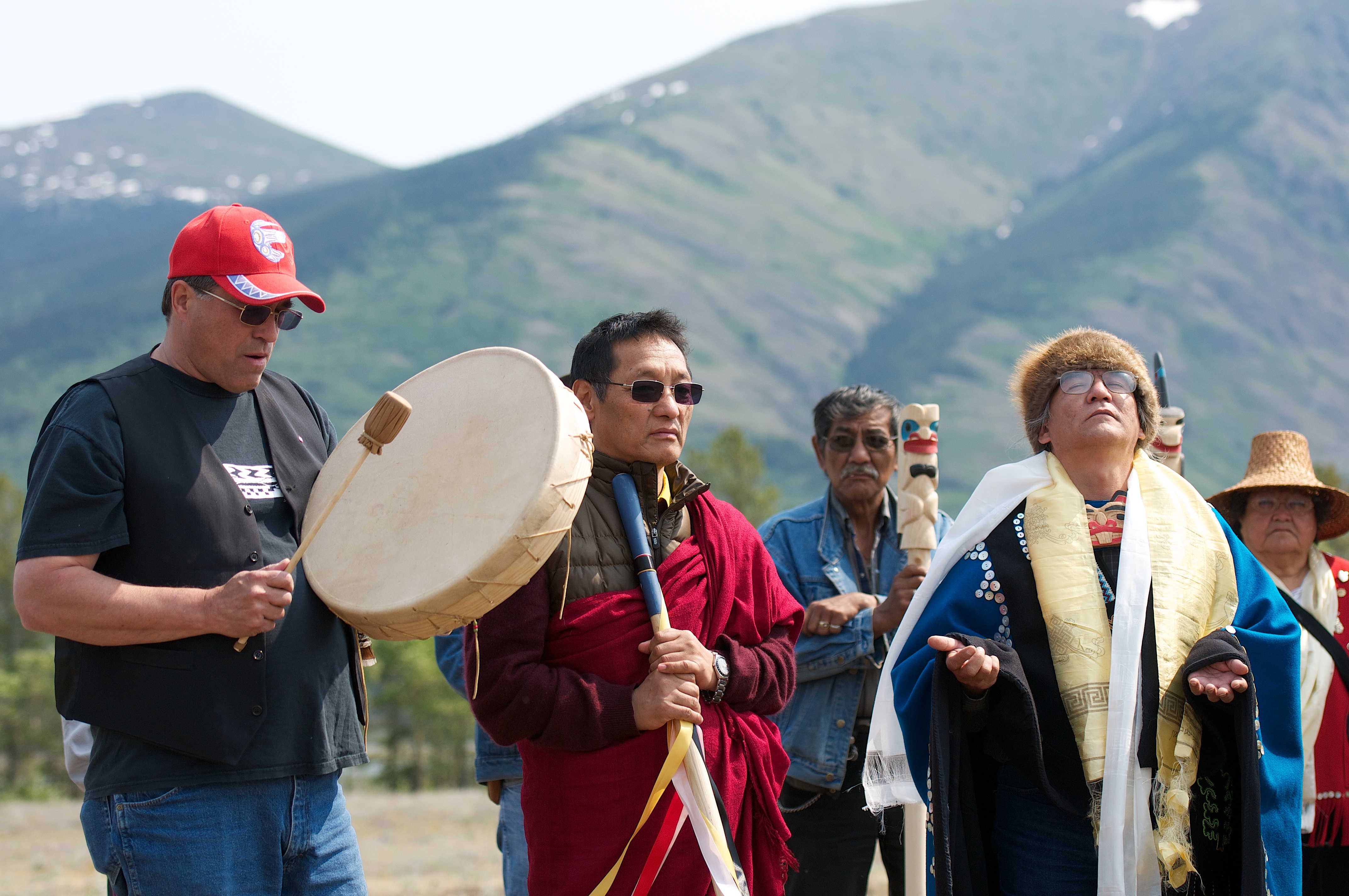 Kyabje Gangteng Tulku Rinpoche with shovel, blessing new ceremonial centre site, 2010, Carcross/Tagish First Nation, Carcross Yukon, Canada