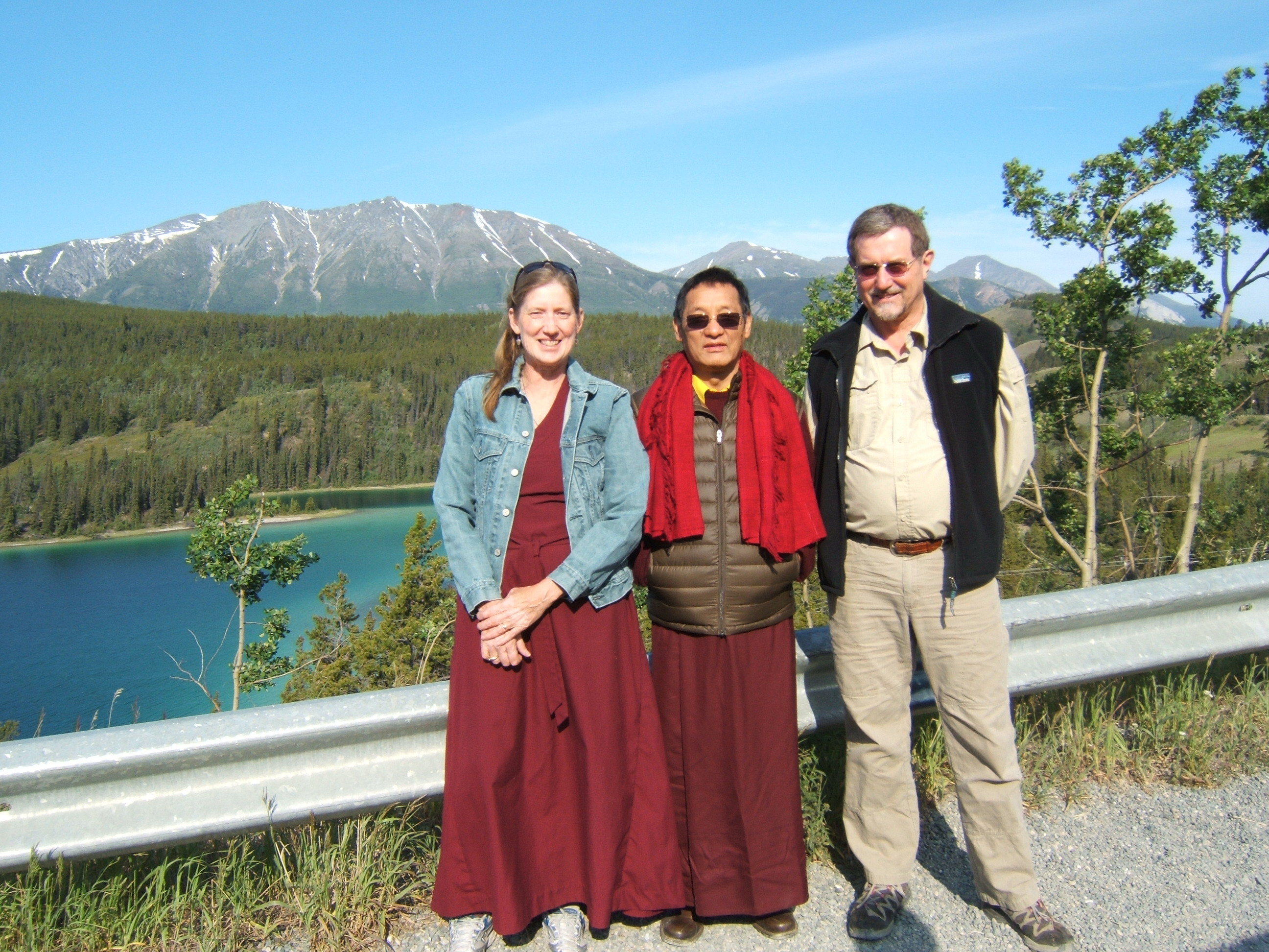 Kyabje Gangteng Tulku Rinpoche with Cheryl and Rick Buchan at Emerald Lake, Carcross Road, Yukon 2010
